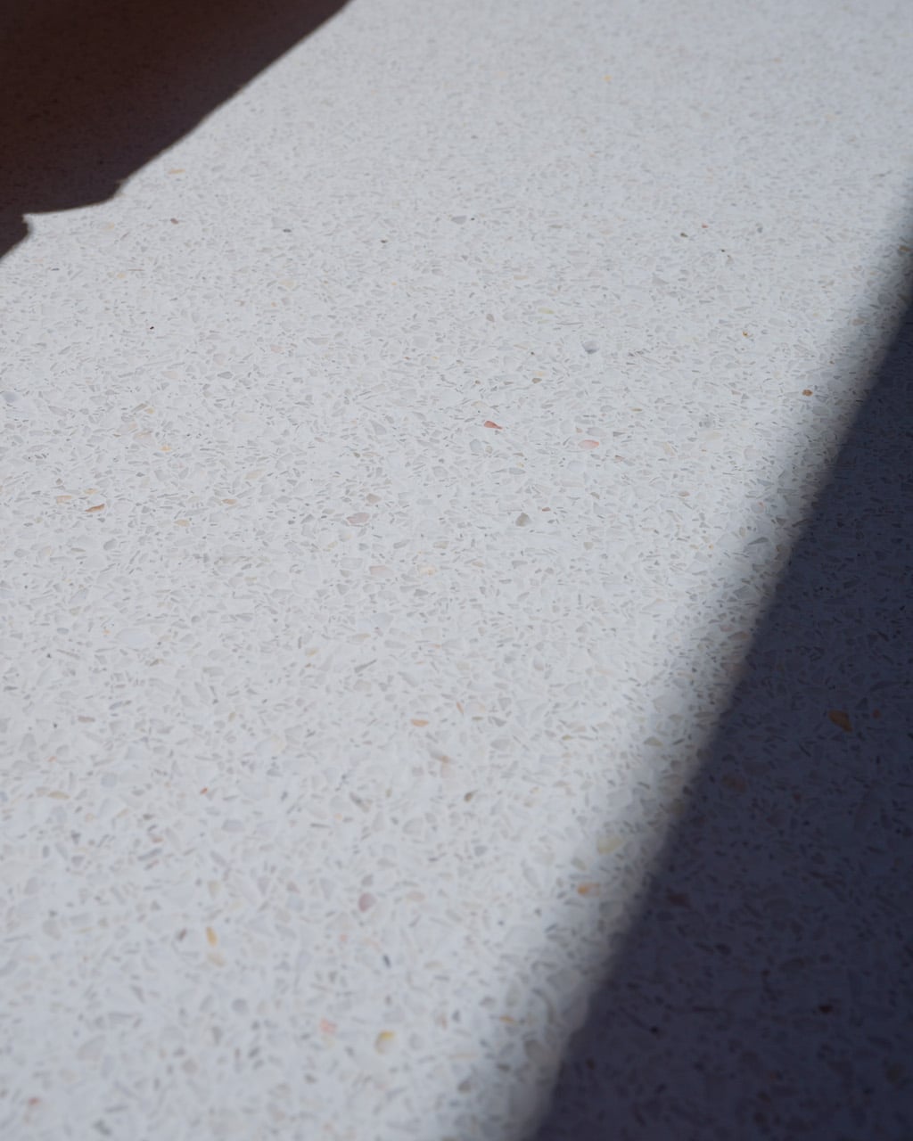 Crafted from marbler, quartz, and recycled glass, bound with plant-based biopolymers.